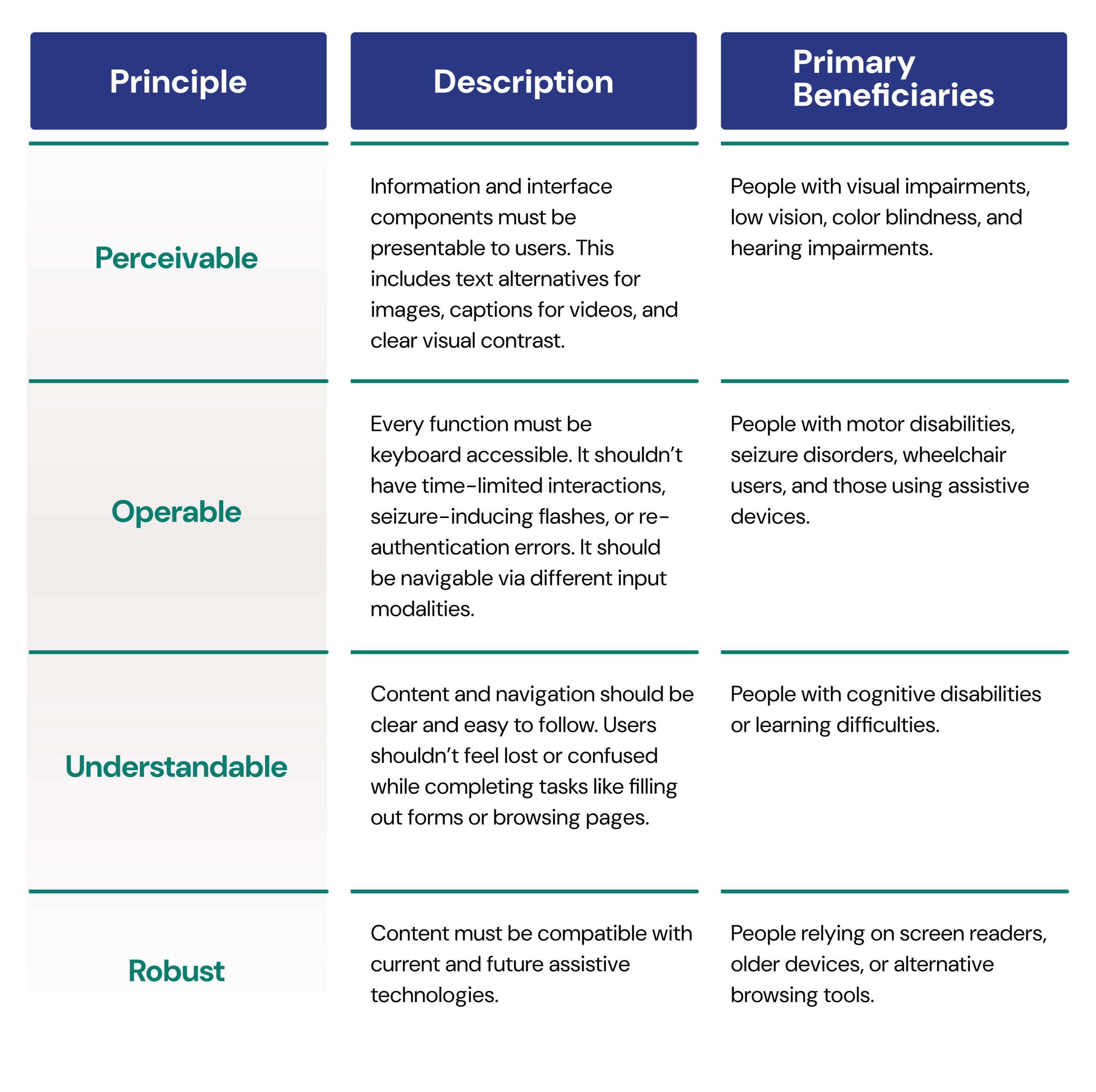 Think of it the way you think about ADA physical standards. The law doesn’t just state “make the building accessible” but also specifies door widths, ramp grades, and turning radius clearances. WCAG 2.1 Level AA does the same for digital accessibility, so there’s no room to argue.